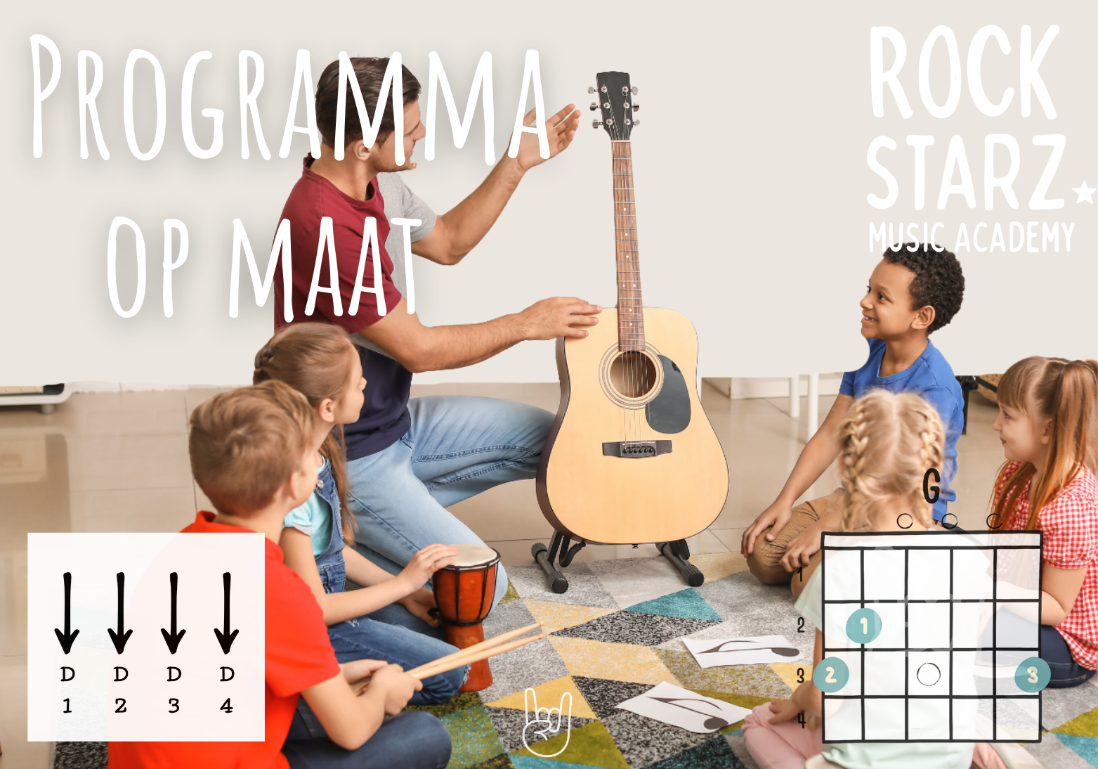 Met de op maat gemaakte muziekprogramma’s van Rockstarz brengen we muziek weer terug de school in. Of het nu gaat om één workshop, een reeks van 10 lessen, wekelijkse muziekactiviteiten of een programma dat maandelijks terugkeert – scholen bepalen zelf de vorm en frequentie. We kunnen in elk gewenst tijdsvak komen, volledig afgestemd op het rooster en de niveaugroepen.